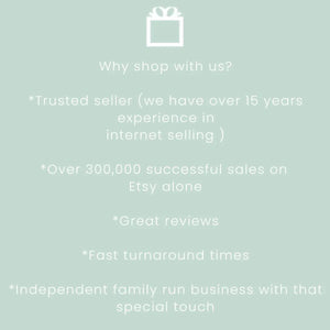 I am happy to refund any unused item that is still saleable, but this does not include personalised, custom-made products. Please contact me within 14 days if there are any issues with your item.