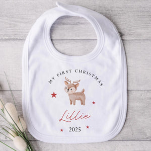 A beautiful Personalised First Christmas Bib custom made for your little one, this 1st Christmas Baby Bib.