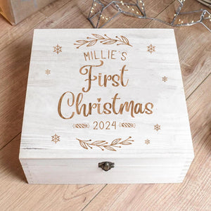 Personalised First Christmas Eve Box, Snowflake Christmas Eve Box, Engraved First Christmas Eve Box, Wooden First Christmas Box, Engraved