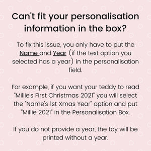 A Baby 1st Christmas Gift is a lovely way to celebrate the special milestone in your little one‘s life- their first ever Christmas! Available as a teddy Toy , this super-soft Custom Cuddly Toy can be Personalised with a Name & Year. The festive design & red text mean these gorgeous Christmas Teddies are ideal as Baby Stocking Fillers or as Christmas Eve Box fillers.