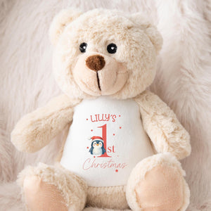 Personalised First Christmas Teddy, Baby 1st Christmas Gift, Teddy Soft Toy, Christmas Soft Toy, Custom Cuddly Toy, Baby Stocking Fillers
