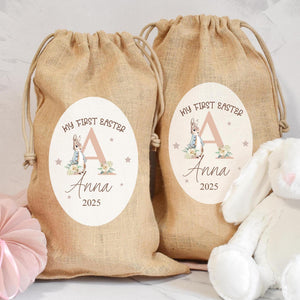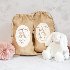 Personalised First Easter Bunny Jute Sack, Personalised First Easter Bag, Child's Storage Bag, Easter Egg Hunt Gift Bag, Easter Egg Hunt
