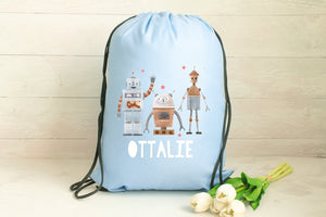 Personalised Gym Bag Kids, Boys Robot Gym Bag, Boys Drawstring Bag, School Bag, Robot School PE Bag, Robot Pump Bag, Nursery Bag, Blue