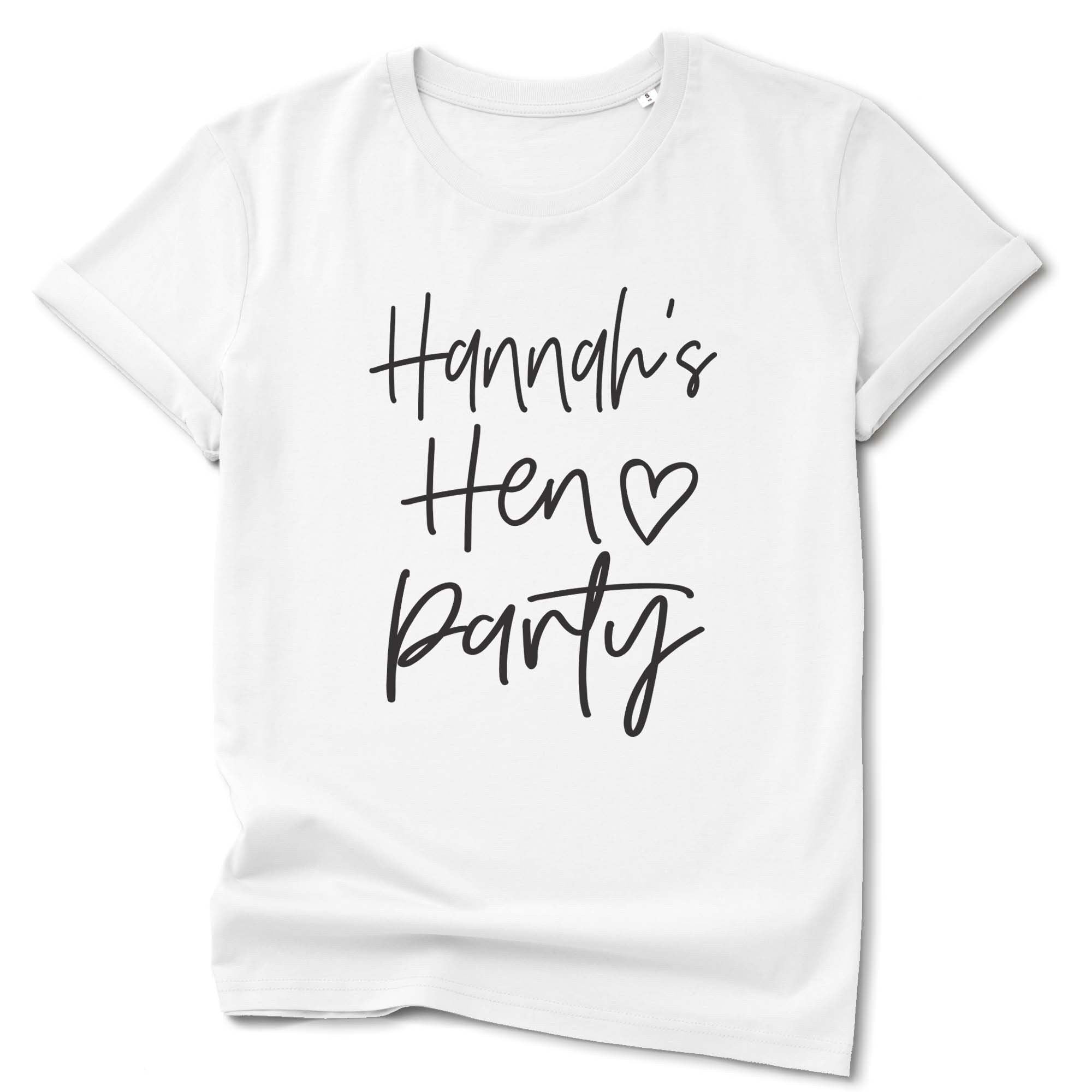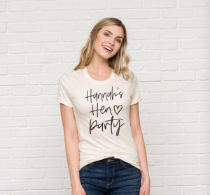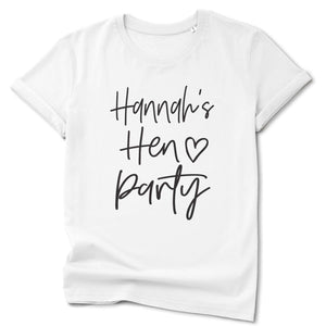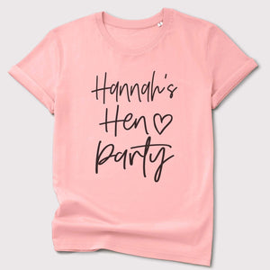A lovely Personalised Hen Party T-shirt in white, cream or pink with a black font.