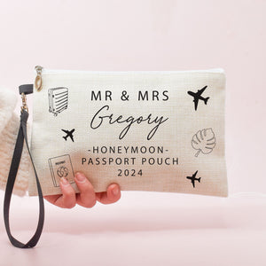 Personalised Honeymoon Travel Bag, Honeymoon Passport Organiser, Passport Holder Bag, Travel Pouch, Travel Wallet, Holiday Pouch, Mr & Mrs