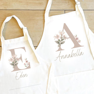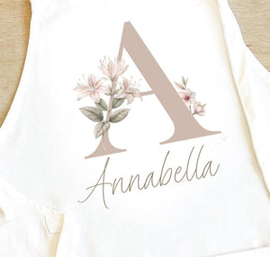 Personalised Initial Apron, Neutral Baking Gift, Watercolour Flowers Apron Cooking Gift, Initial Gift for Her, Custom Made, Your Words