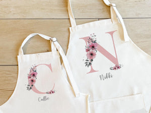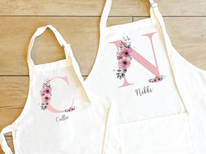 Personalised Initial Apron, Rose Gold Baking Gift, Watercolour Flowers Apron Cooking Gift, Initial Gift for Her, Custom Words, Your Words,