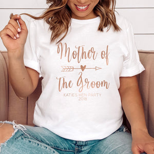 Personalised Mother of the Groom Tribe T-shirt, Rose Gold Hen Night T-shirts, Rose Gold Hen Party Tops, Bride Tops, Bride Tribe Party Tops