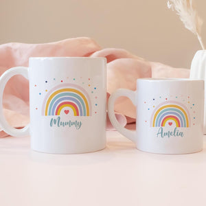 Personalised Mum Daughter Rainbow Mugs, Mum Daughter Matching Gifts, Mother‘s Day Mug, Father Child Mugs Gifts, Fathers Day Gift, rainbows.
