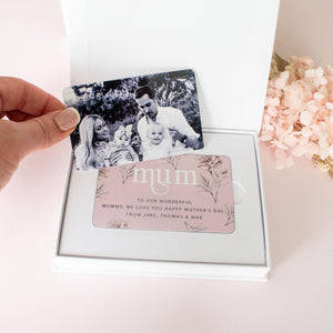 Our Personalised Mum Photo Card is a lovely quality metal card printed on both sides.