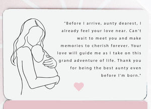 A New Auntie Announcement to give to her as a surprise, she will simply love to have this little card to look at as she gets more and more excited for the new baby‘s arrival.