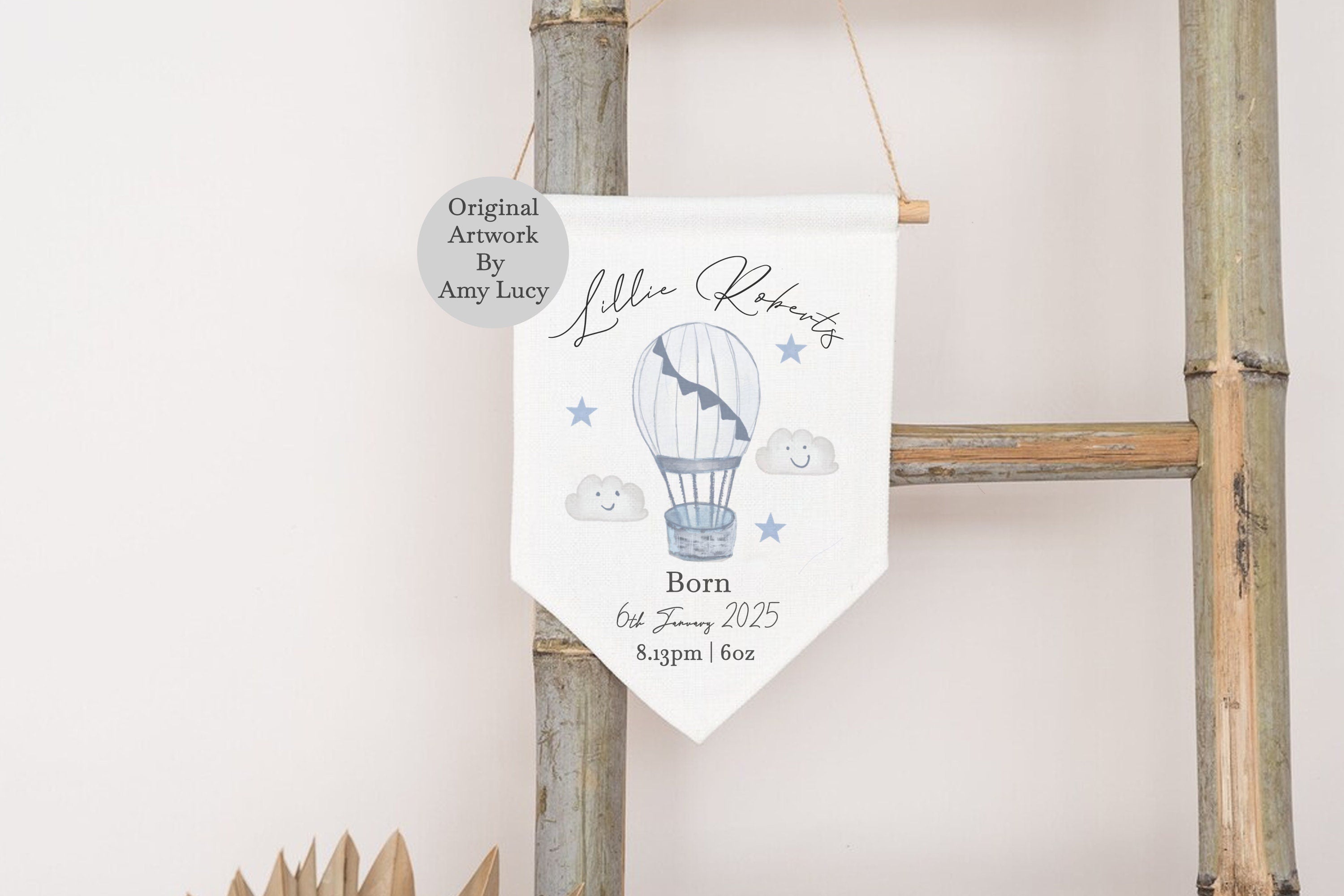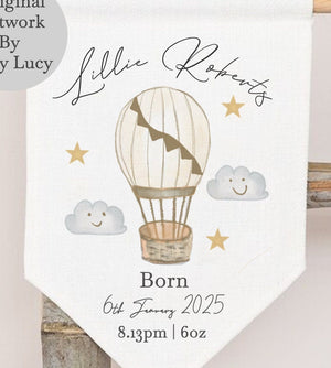 Personalised New Baby Flag - New Baby Gift - Nursery Decor - Baby Gifts - Air Balloon Baby Gift - Personalised Baby Gifts - Banner