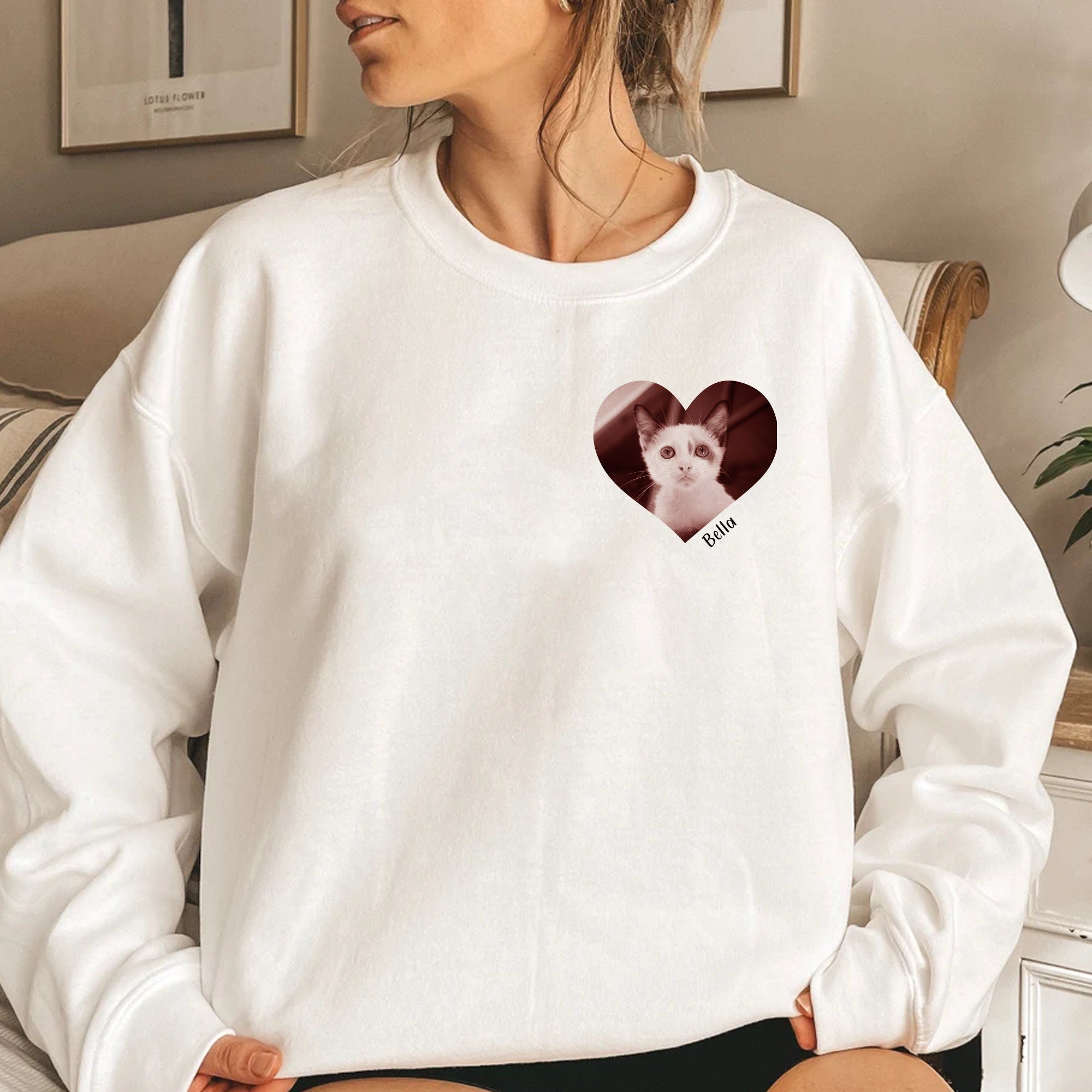 Our Personalised Pet Photo Sweater is super sweet and super special. This Custom Pet Jumper includes your chosen photo in a heart shape.