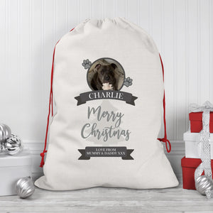 Personalised Pet Santa Sack, Dog Santa Sack, Cat Christmas Sack, Animal Christmas Eve Present Sack, Personalised Sack Bag, Your Pet Photo