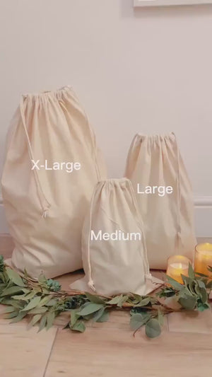 An original Personalised Pet Santa Sack featuring 'your pets name' this Dog Santa Sack is made from a natural cotton and is a premium quality.