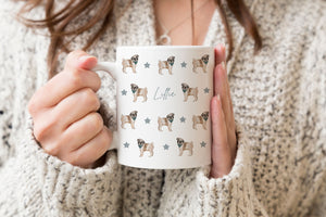 Personalised with a name of your choice, this pug Dog Mug would make a lovely present for Christmas, a Birthday or Mother's Day.
