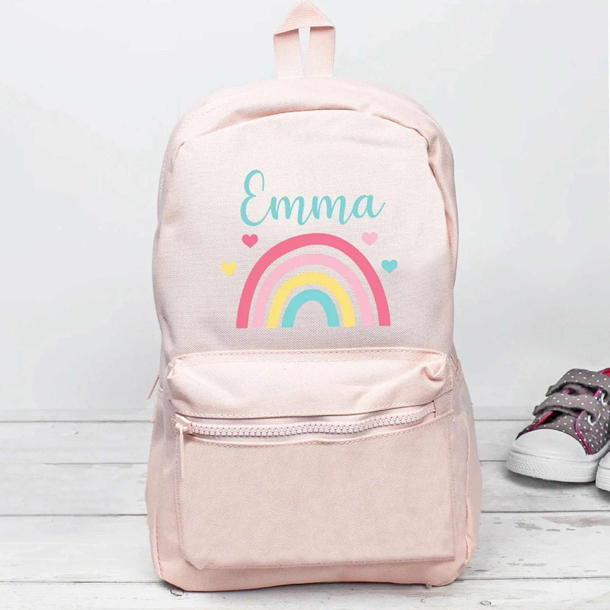 Our Personalised Rainbow Backpack is super cute and is a printed with your chosen name and a cute rainbow.