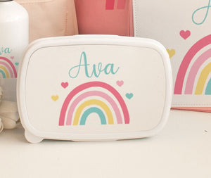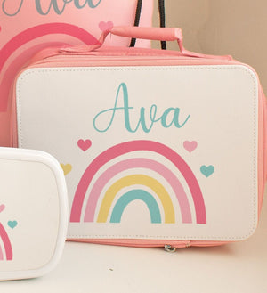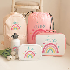 Personalised Rainbow Backpack, Rainbow School Bundle, Kids Back to School Set, Girls School Lunch Bag, Lunch Box, Rainbow Lunch Set, Pink