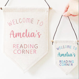 Personalised Reading Flag, Kids Reading Corner Flag, Child Room Wall Art , Personalised Pennant Flag, Children's Bedroom Decor, Wall Hanging
