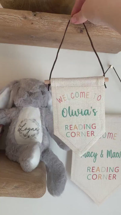 This lovely linen look Kids Reading Corner Flag will look so lovely in your child's room