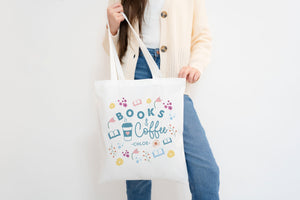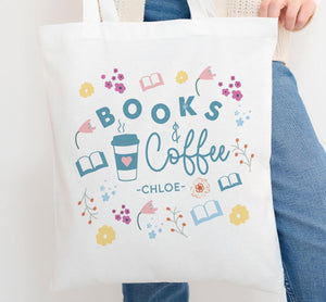 Personalised Reading Tote Bag, Reading Gift For Her, Name Canvas Tote Bag, Reading Style Tote Bag, Reading Tote Bag, Books and Coffee