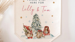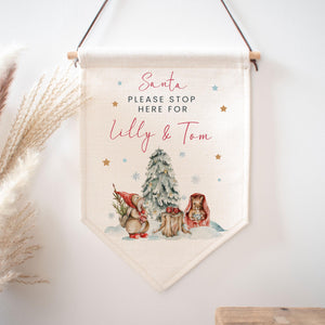 Personalised Santa Stop Here Sign, Custom Santa Stop Here Sign, Woodland Animal Santa Stop Decoration, Woodland Santa Decoration,