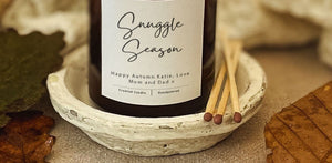 A Personalised Snuggle Season Candle that will look fabulous with your other autumn decor.