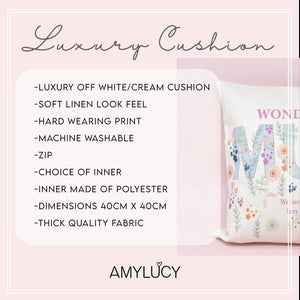 Amy Lucy cushions are a natural cotton for softer long lasting ware and they have a natural cream colour to them to give a rustic, natural feel.