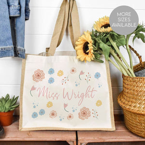 A new Personalised Teacher Tote Bag from Amy Lucy featuring beautiful flower design and your chosen name.