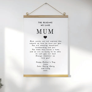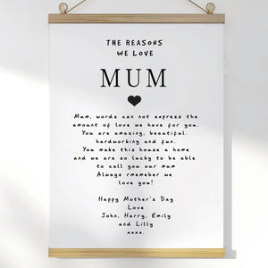 Home Personalised The Reasons we love Mum Poster, Mother's Day Poster, Mum Custom Poster, Personalised Poster About Mum, Mum Posters