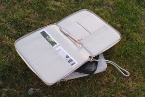 A Passport Organiser that's made from a PU vegan leather that's wipeable and custom printed.