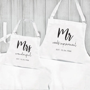 Personalised Valentines Aprons, Mr and Mrs Aprons, Wedding Aprons, Bride Groom Wedding Aprons, Newlywed Aprons, Fun Mr and Mrs Aprons,