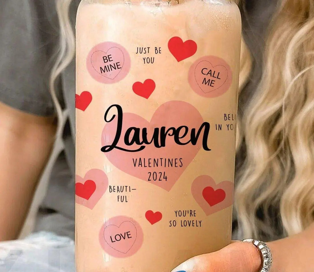 Personalised Valentines Girlfriend Gift, Girlfriend Mug, Affirmation Coffee Cup, Love Hearts Glass Mug, Valentines Libby Glass, Positivity