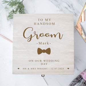Personalised Wooden Groom Gift Box, Wedding Day Engraved Gift Box, Groom Wooden Box, Luxury Groom Storage Box, Groom Memory Box, Groom Gift