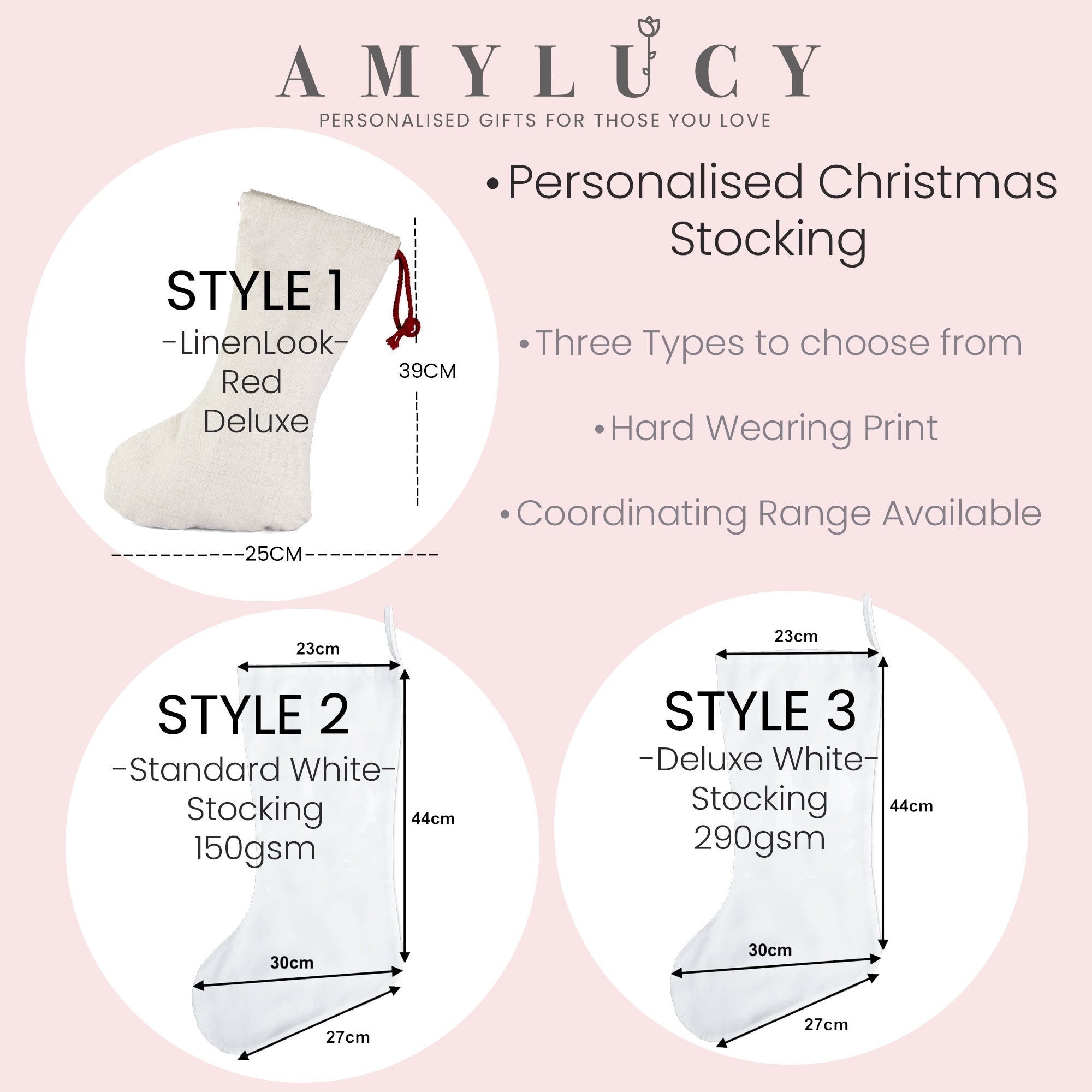 Our Personalised Stockings will sit beautifully above the fireplace or under the tree, making them both a festive & elegant Christmas Family Decoration.