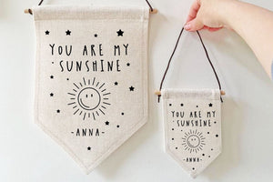 Personalised You are my Sunshine Banner, Child Bedroom Decor, Kids Bedroom Wall Art, Baby Wall Art, Bedroom Flag, Wall Hanging, New Baby
